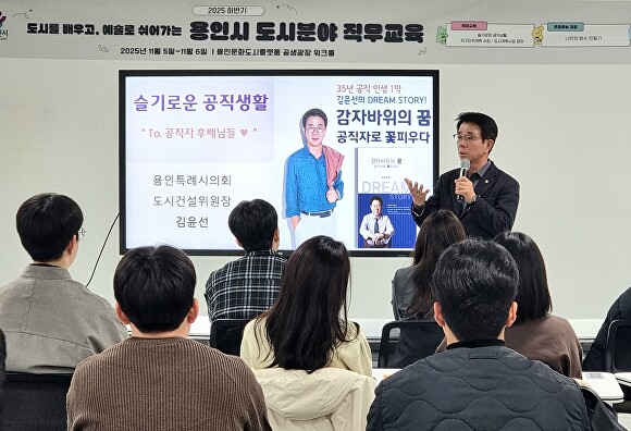[아이뉴스24 정재수 기자] 김윤선 용인특례시의회 도시건설위원장이 5일 용인시 미르스타디움 워크홀에서 열린 ‘8급 이하 도시분야 직무교육 및 현장설명회’에서 ‘슬기로운 공직생활’을 주제로 35년 공직 인생에서 얻은 경험과 철학을 후배 공직자들과 나눴다.