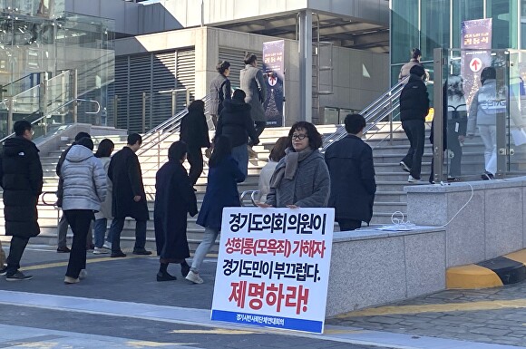 연대회의는 “경기도의회가 스스로 ‘성희롱 의회’라는 불명예를 뒤집어쓰지 않기 위한 유일한 길은 성희롱으로 기소된 의원을 즉각 제명하고 도민의 신뢰를 회복하는 것뿐”이라며 결단을 촉구했다.