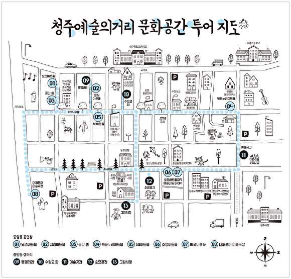 청주 예술의 거리 문화공간 투어 지도. [사진=청주시]