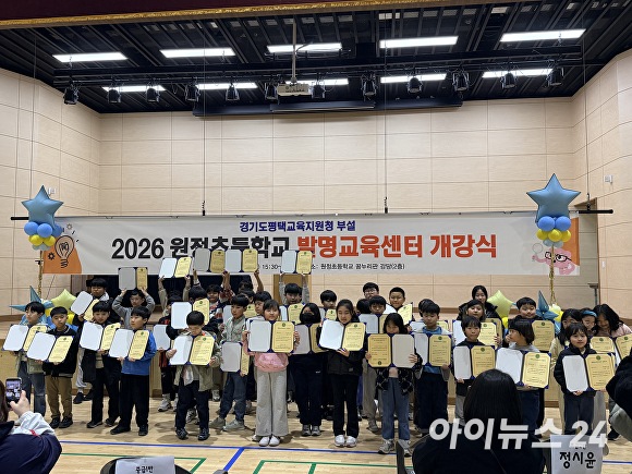 [아이뉴스24 이윤 기자] 경기도 평택교육지원청 부설 원정초 발명교육센터가 11일 개강식을 열고 창의·융합형 미래 인재 양성을 위한 발명교육 프로그램 운영을 시작했다.