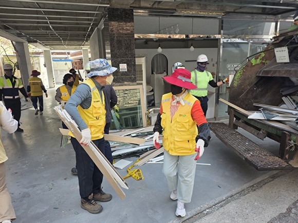 자원봉사자들도 인근 주택과 상가에서 주변 정리와 잔해물 수거 등을 지원하며 피해 주민의 일상 회복에 힘을 보탰다.